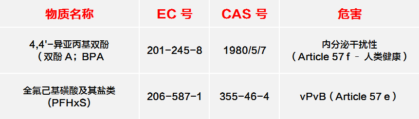 2017年6月17日歐洲化學品管理局(ECHA)發布公告,將在2017年6月底把雙酚A和全氟己基磺酸及其鹽類兩項物質加入到SVHC清單,成為第17批SVHC候選物質。