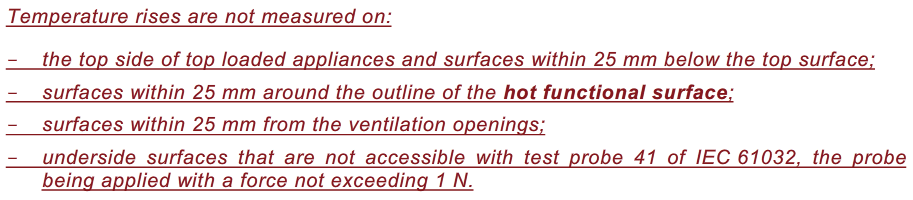 新版本參照EN 60335-2-9/A13將熱表面溫升要求作為產品強制要求錄入標準中: