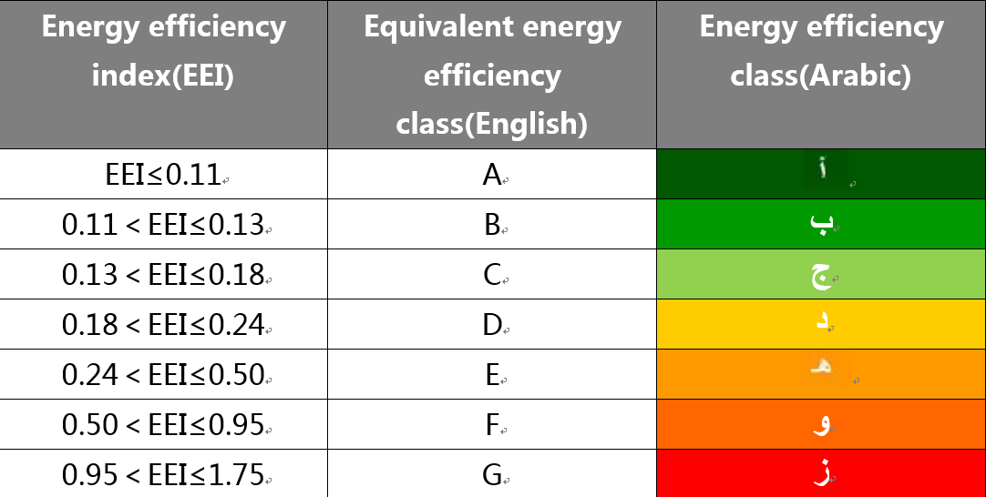 c 是能效等級。能效等級與歐洲ERP也是不同的,參考如下表格。這里需要注意的是,所進行檢測的燈泡必須是C級以上才滿足SASO的要求,才能出口到沙特。