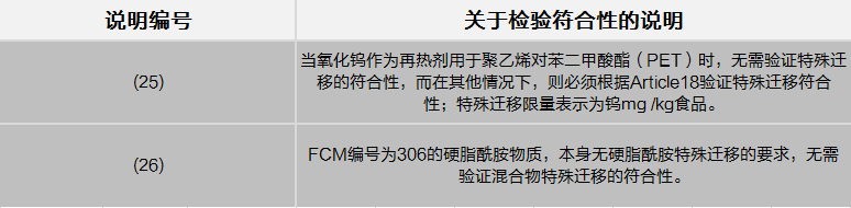 除此之外,根據(EU)2018/79,(EU)No 10/2011附件I表1此次還新加入4種授權使用物質,其中2,4,4‘-三氟二苯甲酮和2,3,3,4,4,5,5-七氟戊烯被允許用作單體或起始物,氧化鎢和脂肪酸衍生的甲基支鏈和直鏈C14-C15烷基酰胺混合物則被授權作為添加劑或聚合物生產助劑使用。