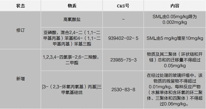 2018年2月22日,WTO發布通知,歐盟委員會提議修訂有關塑料食品接觸材料的法規(EU)10/2011,該提案授權兩種新的食品接觸材料物質,擴大了先前授權物質的使用范圍,并降低特定遷移限制范圍。評論截止日期為2018年4月23日。