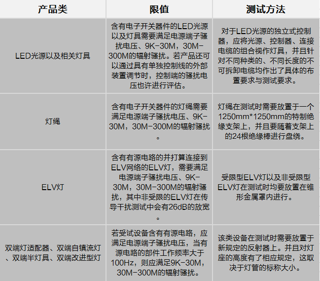 ②  明確了以下產(chǎn)品的輻射騷擾測(cè)試相應(yīng)的適用范圍:熒光燈與其他放電燈所用的獨(dú)立鎮(zhèn)流器、半燈具、自鎮(zhèn)流燈、紫外線(xiàn)或紅外線(xiàn)器具、冷陰極管型放電燈、自容式應(yīng)急照明燈具;