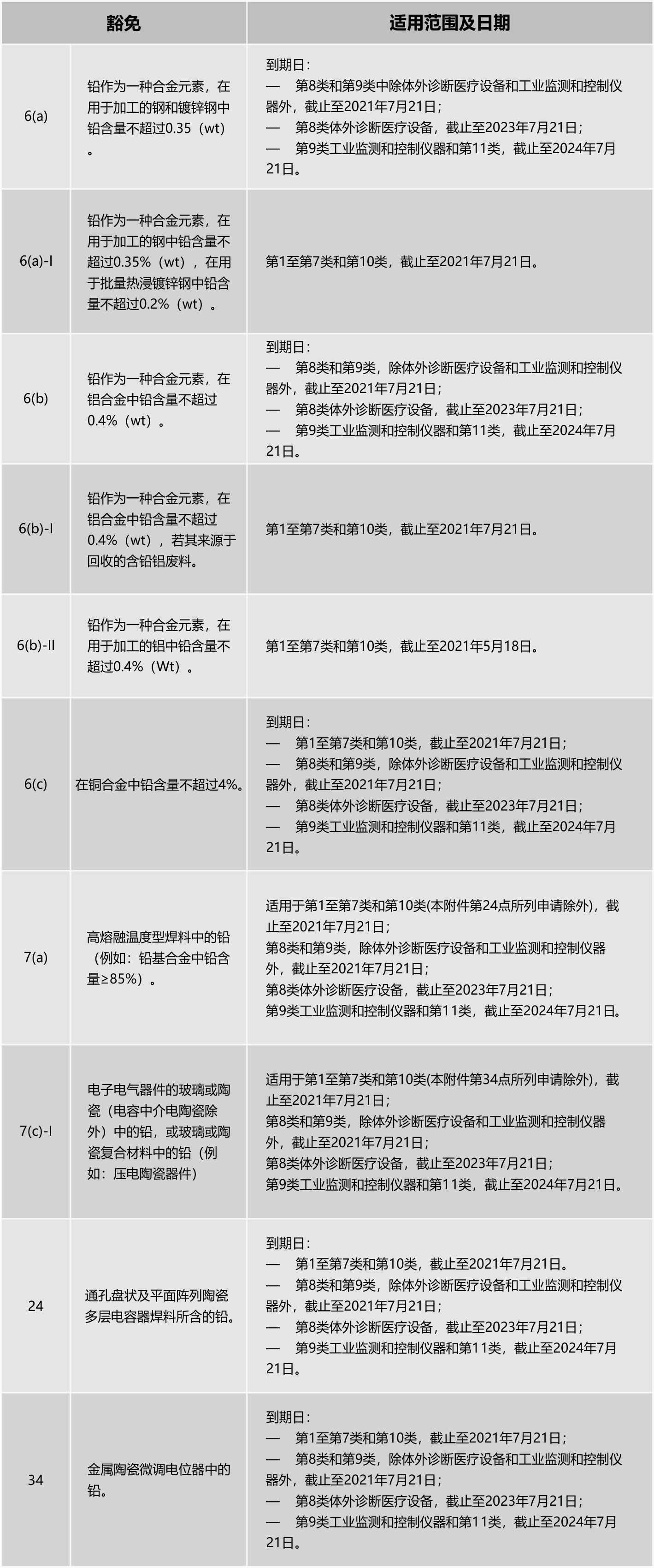 RoHS法規(guī)附件III的對(duì)應(yīng)條例由以下內(nèi)容代替: