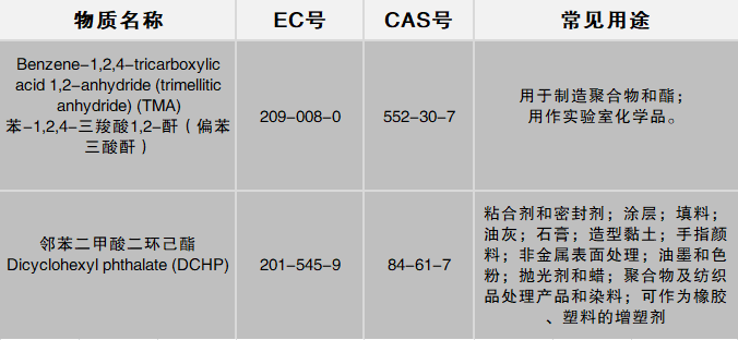 第十九批10種高度關注物質中的其他8種,是2018年3月歐洲化學品管理局(ECHA)公布的8種公眾評議物質,此次全部被列入高度關注物質清單,如下:
