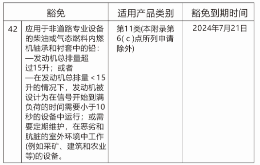歐盟委員會起草了一份委托指令,擬增加第42項豁免條例到ROHS 指令2011/65/EU 附錄Ⅲ中。