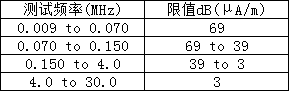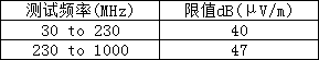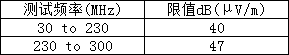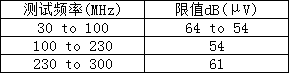 輻射騷擾測試要求30~300MHz,限值如下(QP/準峰值,3米版電波暗室):![]() |