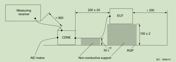 | 無相應的工作頻率限制規定,尺寸要求則是僅僅規定了使用的接地金屬板必須要比待測物至少大20cm; | 規定了若需要使用CDNE法去評估輻射騷擾測試,產品的內部工作頻率必須≤30MHz,并且產品尺寸應該控制在3m*1m*1m(長寬高)內。 |