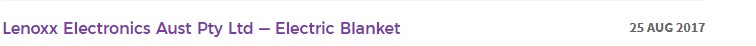 作為澳洲認證市場里最活躍的公司之一,沃特君一直持續(xù)關(guān)注澳洲市場的召回事件,經(jīng)過一年來的觀察,發(fā)現(xiàn)兩類產(chǎn)品的召回事件持續(xù)增多,這兩類產(chǎn)品分別為“電熱毯”及“多士爐”。從17年8月份到今年8月份以來,已發(fā)起五起此類產(chǎn)品的召回事件: