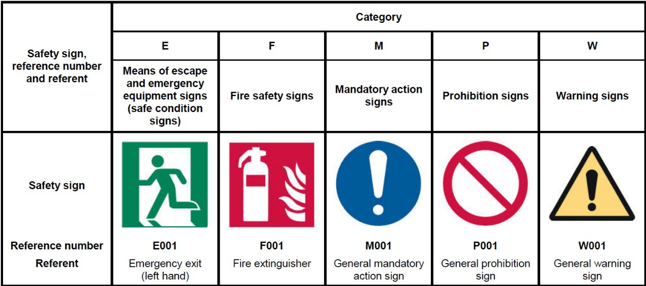 再回到更加通用的國際標準化組織ISO制定的規則上來,沃特君找到了與上述表格對應的ISO標準,即ISO 7010 (Graphical symbols — Safety colours and safety signs — Safety signs used in workplaces and public areas),從中我們找到了與之對應的一些標識及詳細說明: