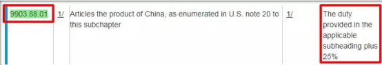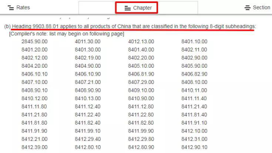 再往下閱讀,在“Chapter”下文中列出了歸在“9903.88.01”項下的編碼。