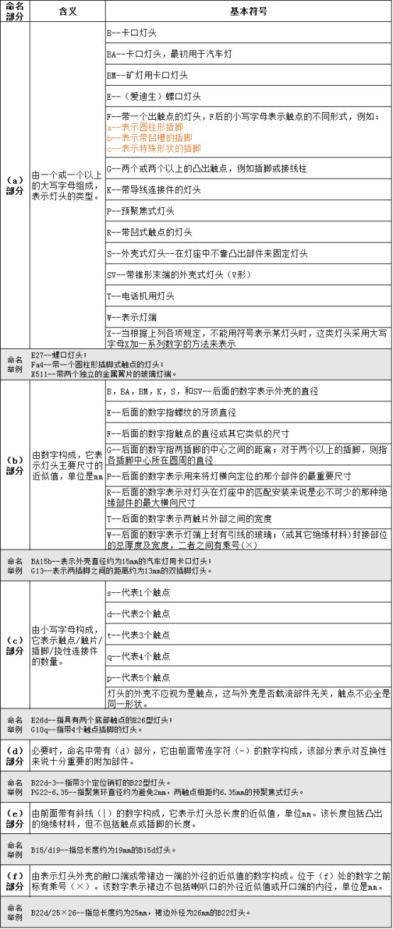 ①命名可采用縮寫的燈頭符號,但這種縮寫符號不得引起誤解;