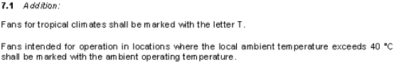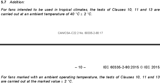 CSA60335-2-80要求如果風扇使用環境在熱帶的話產品的label需要帶T,溫升測試需要按照T值作為環溫來進行。