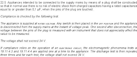 CSA60335-2-80要求電子式風扇需要進行插頭放電測試,要求是1秒內電壓能降低到34V以下。