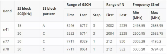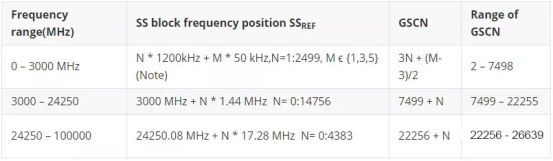 ▎SSB的頻域位置SSREF與GSCN的關(guān)系參考如下表: