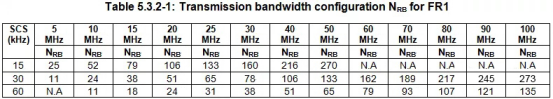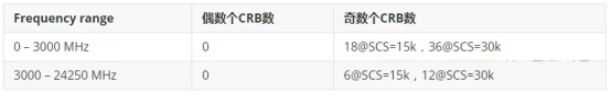 ▎下附不同載波帶寬、不同SCS帶寬下的最大可用CRB數(shù),如下表: