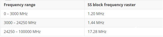 ▎3GPP定義了3個(gè)同步柵格,如下表: