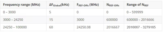 其中,FREF-Offs和NREF-Offs由下表給出,NREF為NR-ARFCN