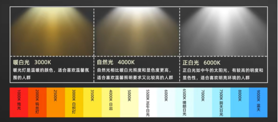 色溫用來表示光的顏色,可以簡單地理解為燈光的冷暖色度。色溫越低表示燈光越接近紅色(暖光);色溫越高表示燈光越接近藍色(冷光)。