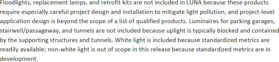 想要取得DLC LUNA認(rèn)證,產(chǎn)品不僅需要滿足DLC SSL V5.1中的光效和光質(zhì)量的要求,還需要滿足具有有助于限制光污染,天空輝光效應(yīng)和防止光侵入的要求。