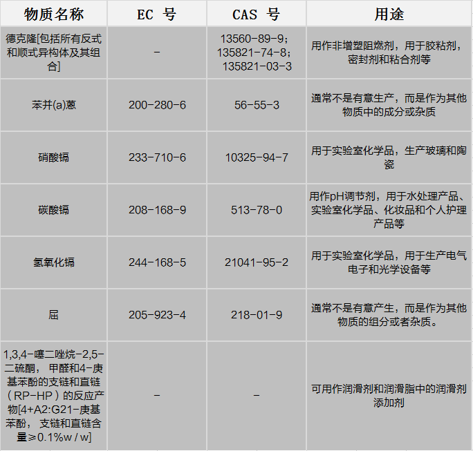 2017年12 月20日,歐盟成員國委員會(MSC)同意將7物質列入高度關注物質清單。