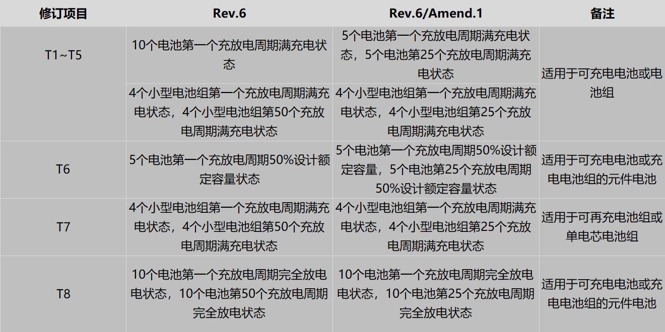 目前,聯合國發布的UN38.3最新版本為ST/SG/AC.10/11/Rev.6/Amend.1,其中涉及的修訂有: