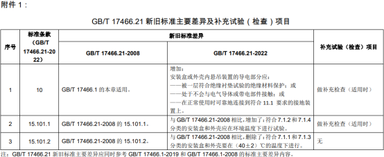 附件∶1.GB/T 17466.21新舊標準主要差異及補充試驗(檢查)項目