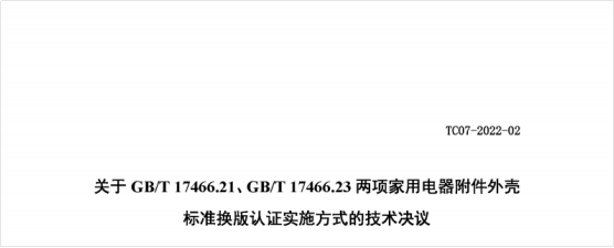 關于GB/T 17466.21、GB/T 17466.23兩項家用電器附件外殼標準換版認證實施方式的技術決議