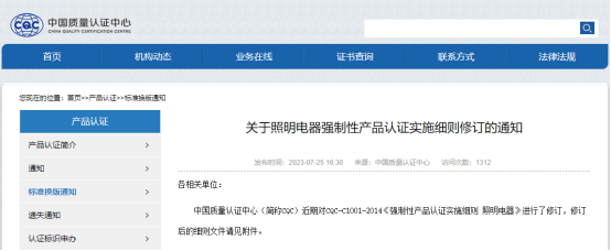 關(guān)于照明電器強制性產(chǎn)品認(rèn)證實施細(xì)則修訂的通知