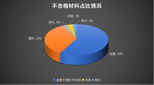 在這些抽檢的產(chǎn)品品類中,抽檢品類數(shù)量占比最高的是時(shí)裝類(占抽檢總量36%),其次為玩具(19%)和混合物(17%)以及電子電器(13%)。不合規(guī)率最高的產(chǎn)品類別是電子電器產(chǎn)品(占所有品類的36%),其次是時(shí)裝(29%)和玩具(22%)。