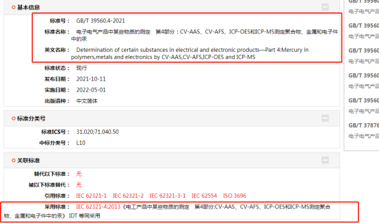 為與國際電器電子產品有害物質檢測方法標準保持一致,暢通產業鏈供應鏈,服務貿易便利化,決定將電器電子產品有害物質限制使用合格評定制度檢測方法標準由GB/T 26125《電子電氣產品 六種限用物質(鉛、汞、鎘、六價鉻、多溴聯苯和多溴二苯醚)的測定》調整為GB/T 39560.1、GB/T 39560.2、GB/T 39560.301、GB/T 39560.4、GB/T 39560.5、GB/T 39560.6、GB/T 39560.701、GB/T 39560.702共8項關于電子電氣產品中某些物質測定的系列標準(以下簡稱GB/T 39560系列標準)。