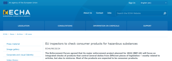 官方鏈接:https://echa.europa.eu/-/eu-inspectors-to-check-consumer-products-for-hazardous-substances