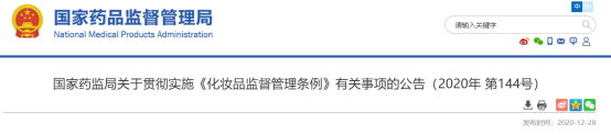 國家藥監(jiān)局關于貫徹實施《化妝品監(jiān)督管理條例》有關事項的公告