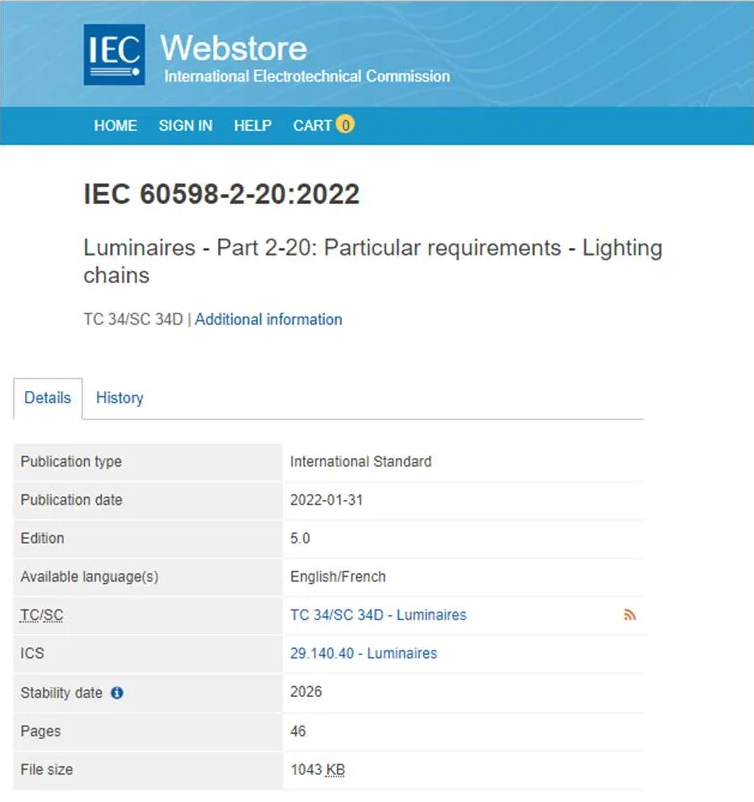 IEC 60598-2-20:2022燈串最新版標準正式發布