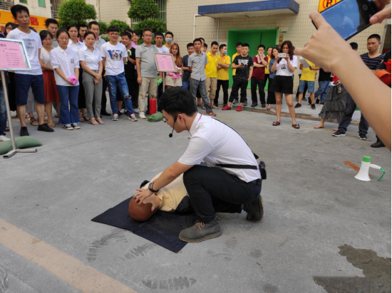 逃生演習結束后,指揮員和沃特消防培訓講師分別對“如何使用滅火器材撲滅不同類型的火情”以及“如何通過心肺復蘇搶救因吸入濃煙休克的傷員”進行了詳細而專業的講解和示范,并現場邀請企業代表們上前演示。