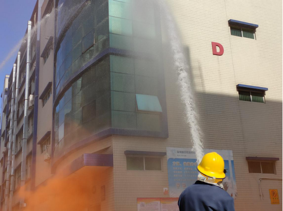 接著,演練模擬金倡達科技園D棟樓層因故著火,并造成人員受傷。該園區物業公司立即啟動應急預案,成立應急救援指揮部,在消防官兵到來之前,負責指揮火災事故的救援工作。