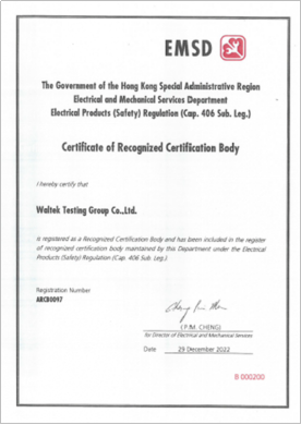 按照香港《電氣產(chǎn)品(安全)規(guī)例》規(guī)定,以及經(jīng)香港特別行政區(qū)政府機(jī)電工程署批準(zhǔn),東莞沃特已于近期獲得擴(kuò)項(xiàng)認(rèn)可,成為香港電氣產(chǎn)品(安全)“認(rèn)可核證團(tuán)體”(Recognized Certification Bodies- RCBs for Electrical Products)。在原有電子、娛樂(lè)器具、資訊科技設(shè)備的基礎(chǔ)上,新增插頭插座、拖板,開關(guān)及控制器,照明產(chǎn)品領(lǐng)域等。