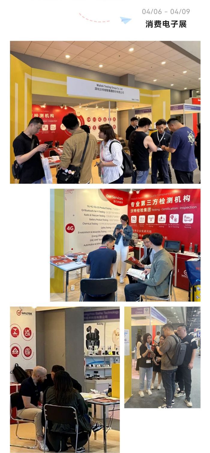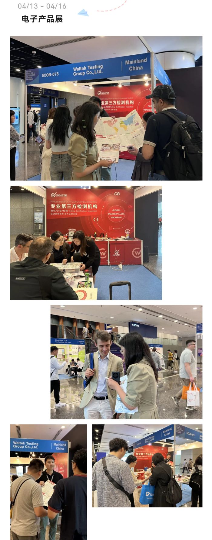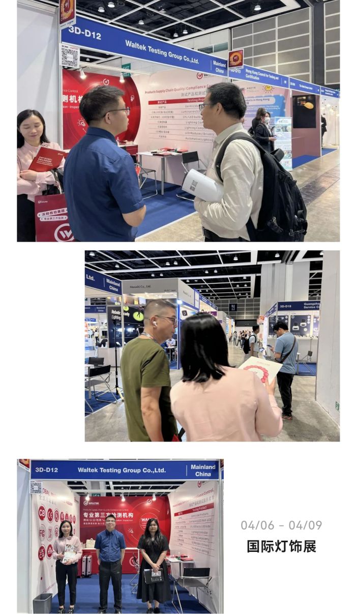 2024年,香港4月展會季再度啟幕,沃特檢驗集團攜優質的一站式檢測認證服務方案參加了全球電子電氣領域的頂級盛會——由環球資源主辦的消費電子展、移動電子展,由香港貿發局主辦的電子產品展、國際燈飾展。