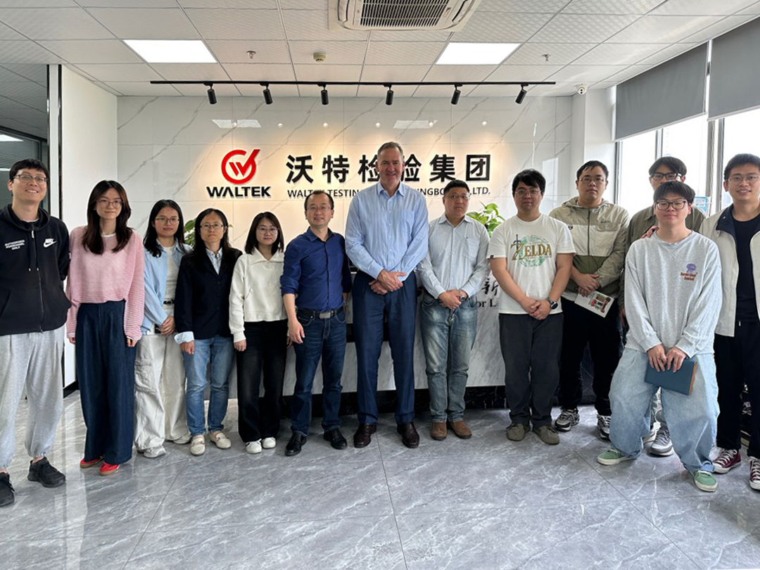 Mr. Matt Toohey and Mr. Baxter Bao had an in-depth communication with Mr. Mao Jianzhong, the general manager of Waltek Ningbo, as well as the main persons in charge of the Electronic and Electrical Engineering Department and the International Certification Department, sharing the latest information of the Australian certification system and the updated information of related product testing standards. Mr. Matt Toohey and Mr. Baxter Bao spoke highly of professionalism and service quality for Waltek Ningbo.