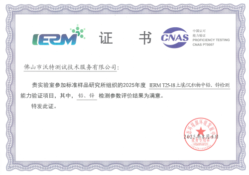 佛山沃特參加IERM T25-18土壤/沉積物中鉛、鋅檢測能力驗證 獲“滿意”結(jié)果