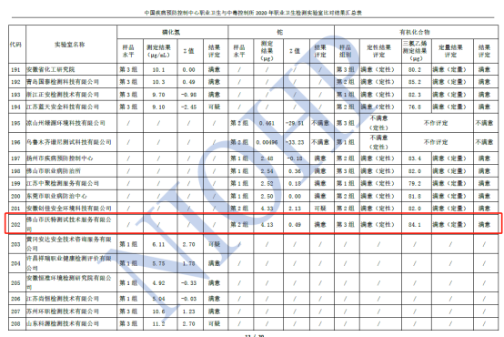 佛山沃特參加2020年職業衛生檢測實驗室比對取得滿意結果