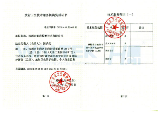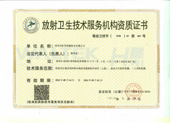 深圳虹彩取得放射衛生技術服務機構資質(乙級)