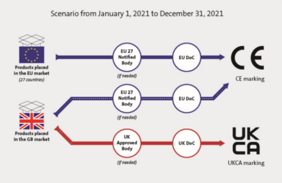 2022年1月1日起:英國將不再承認(rèn)CE標(biāo)志。注:只有產(chǎn)品帶UKCA標(biāo)志且符合英國的相關(guān)規(guī)則的情況下,帶有CE標(biāo)志的產(chǎn)品才可在英國銷售。即在同時滿足英國和歐盟法規(guī)且互不遮擋的情況下,可以在產(chǎn)品上同時使用CE和UKCA標(biāo)志。